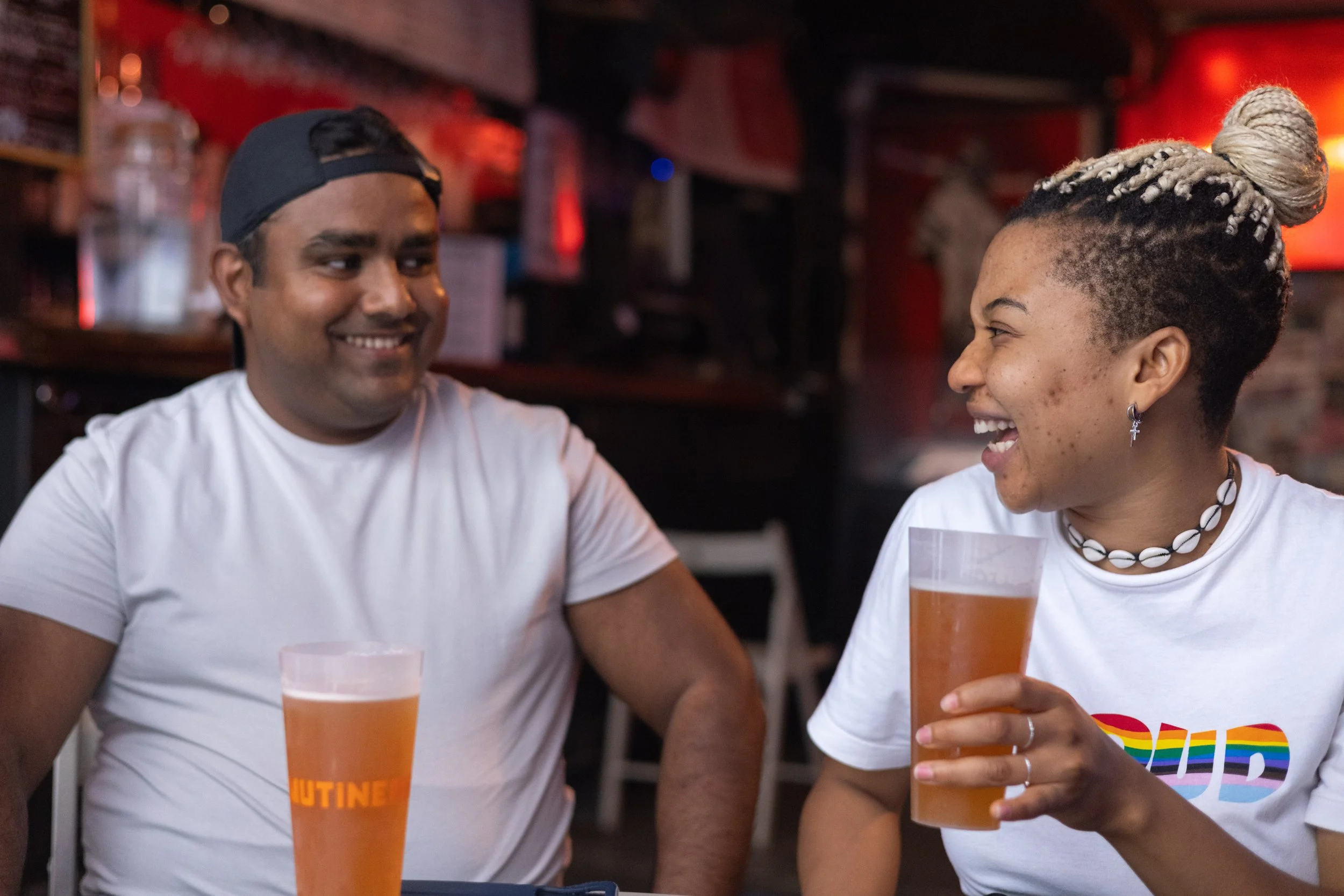 Courage and Aslam in a gay bar in Paris. Proud to be able to pay for a beer. Proud to be herself and happy to be surrounded with a friend. Paris, 10 September 2023.