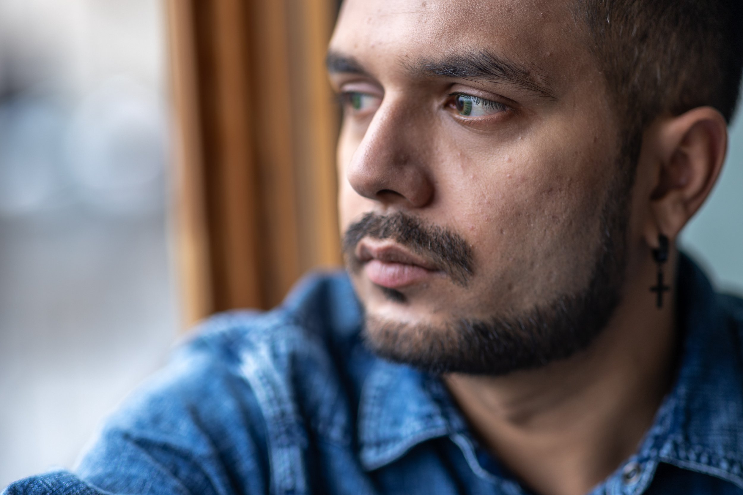Oscar, 30 years old, from India. His family abandoned him because of his sexual orientation. Oscar was afraid to get killed by his own family. Oscar fled India in 2016, lived in Ukraine for 6 years and arrived in Paris in July 2022. The war between Russia and Ukraine made Oscar flee again. Paris, March 8, 2023.