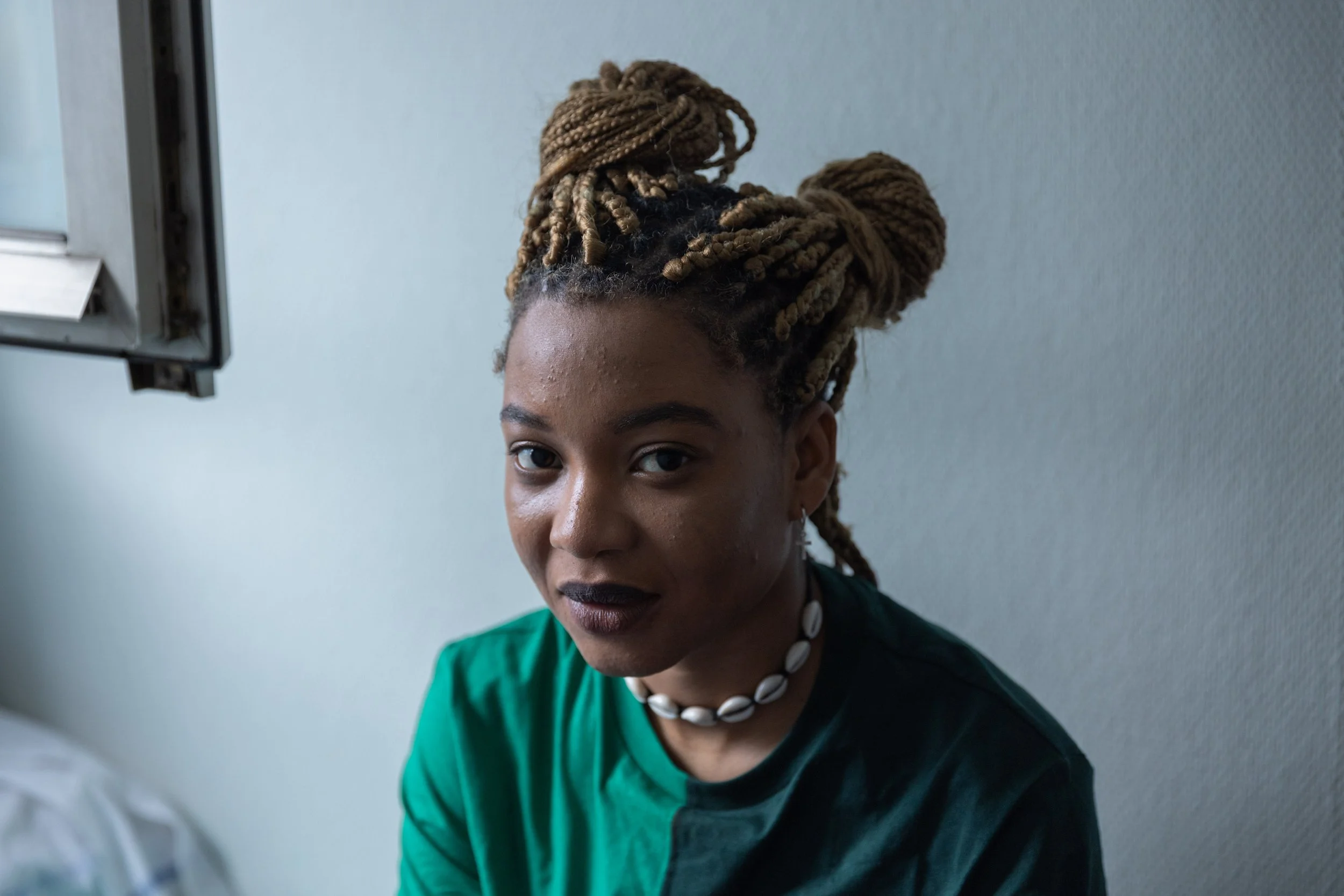 Courage, 28, from Nigeria, arrived in Paris in January 2021. She ended up on the streets in Nigeria because she was abandoned by her family, who told her she has a “bad spirit” (because she is a lesbian). Courage left Nigeria in 2015 and arrived in Italy, where she was forced to work. Fontenay-sous-Bois, 11 March 2023.